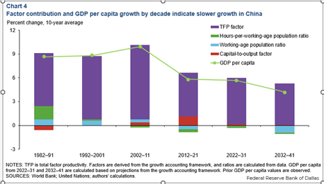 Yes, increasingly China cannot rely on an expansion of a cheap workforce from rural areas to achieve more output, but instead must raise the productivity of the existing labour force, especially through investment in technical innovation. And it is doing so. The Federal Reserve Bank of Dallas shows that ‘total factor productivity’ (which is a crude measure of innovation) is growing at 6% a year, while it has been falling in the US.