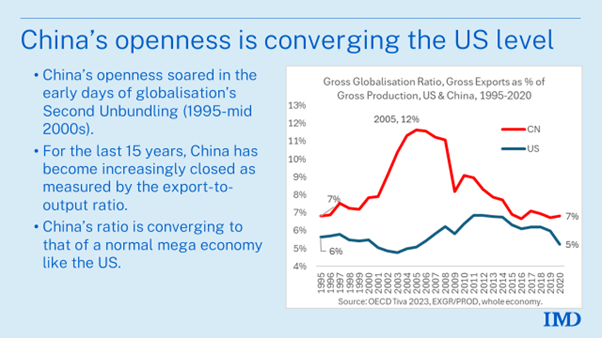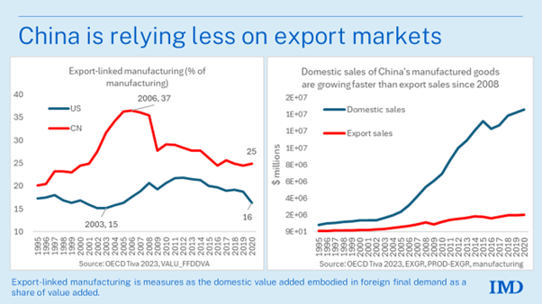 But what that shows is that Chinese manufacturers remain highly competitive in world markets, despite all the efforts of the West to impose tariffs and other protectionist measures. China is doing particularly well in electric vehicle production, solar energy and other green technologies. But as Baldwin points out, this export success does not mean that China depends on exports for growth. China is growing mainly because of production for the home economy, like the US.