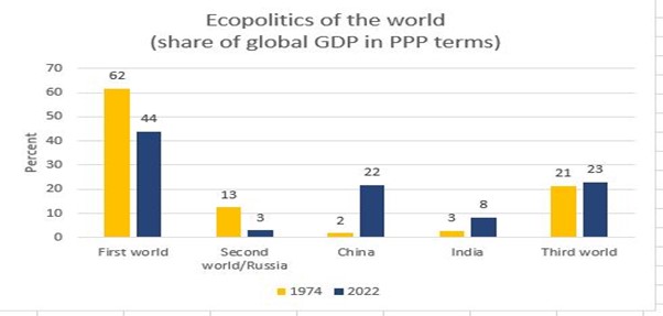 The US hegemony over manufacturing, trade and technology is weakening. The position of the imperialist bloc of G7-plus nations in global GDP is now only twice as large as China compared to 300 times in 1970.