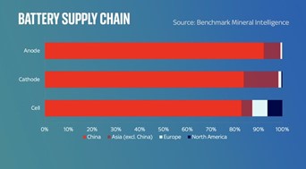 China is also utterly dominant when it comes to the refining of the materials that then go into the chemicals that then go into the cells which go into the EVs.