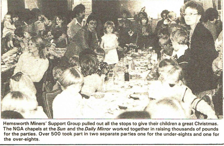 In the Hemsworth area of South Yorkshire, two children’s parties were organised, one for over 8s and one for those under 8. These were funded by print workers from the National Graphical Association (NGA) trade union working at The Sun and The Daily Mirror, who raised thousands of pounds between them. And these efforts were duplicated in every mining area [Militant 4 January]. Some older children, who were old enough to understand the situation, remember that Christmas fondly.