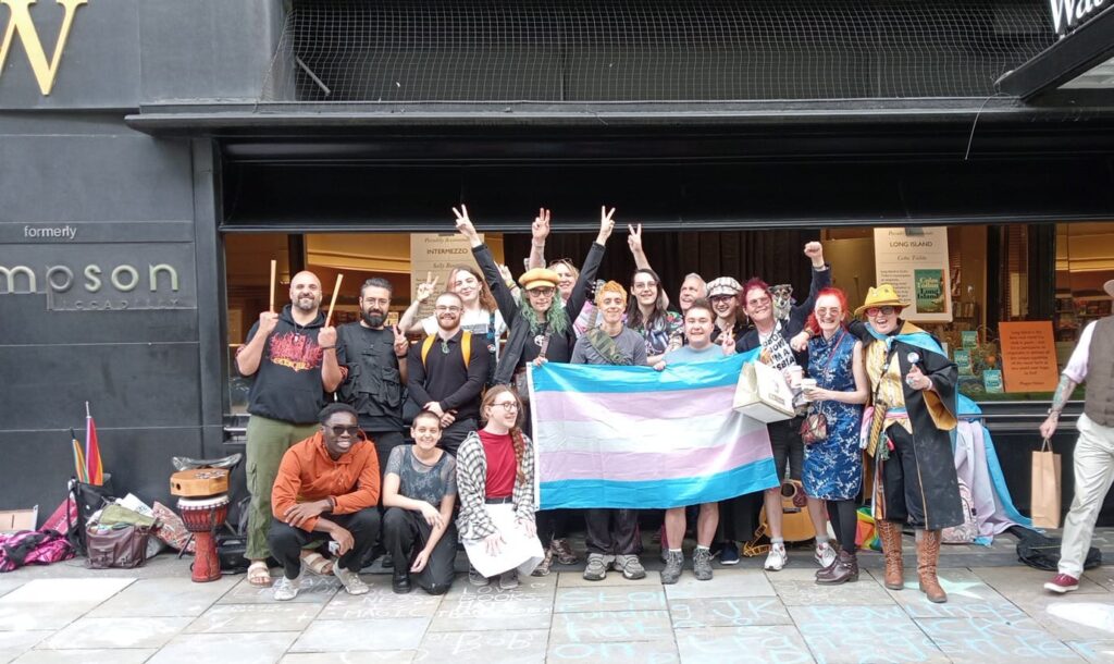 The group have subsequently carried out peaceful protest outside Waterstones bookshops, drawing attention to the fact that the wealthy author of the Harry Potter books, JK Rowling, has part-funded the case that led to the Supreme Court judgement and has declared that she has set up a fund out of her vast fortune to finance more legal cases designed to ruin the lives of trans people.