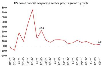 While the leaders and strategists of global capitalism meet in Canada and Sweden to discuss how to handle Russia, China and Iran, the immediate economic picture in their own economies is getting bleaker. According to the second estimate for the first quarter of 2025 US real GDP fell 0.2% compared to the last quarter of 2024. Most worrying, corporate profits fell 2.9% qoq, while non-financial corporate profits fell 3.5% on the quarter. Profits growth is slowing…