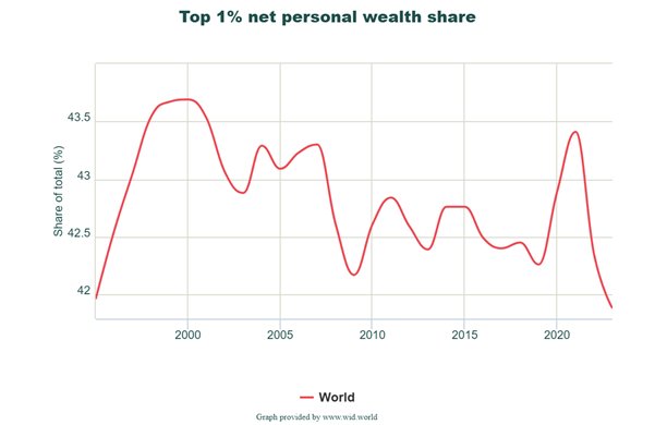 And that the top 1% of the world’s population have about 42% of all personal wealth, the same as in 1995.