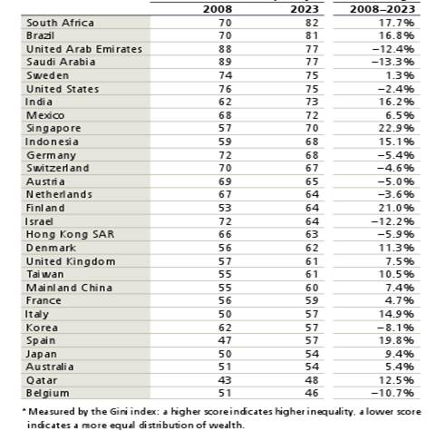 Personal wealth inequality by country