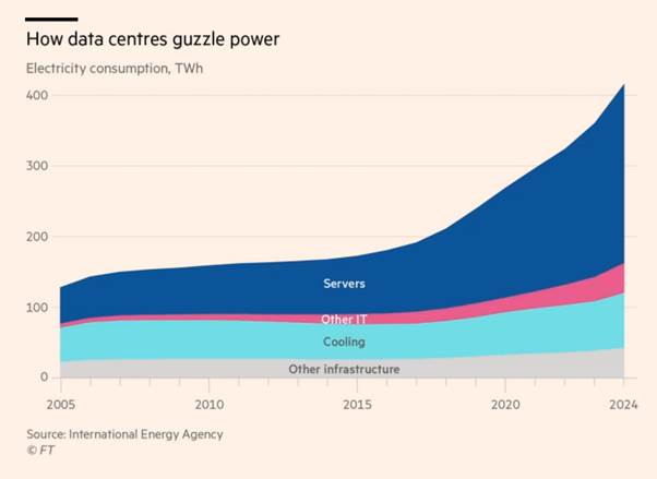 Meanwhile, the massive construction of data centres is consuming unprecedented levels of energy. The International Energy Agency predicts data centre electricity consumption will double to 945 terawatt-hours by 2030 — more than the current power used by an entire country such as Japan. Ireland and the Netherlands have already restricted the development of new data centres due to concerns about their impact on the electricity network. There are huge surges in power demand at data centres in training AI models, along with a bumpy renewable energy supply that threatens the resilience and capacity of current energy systems.