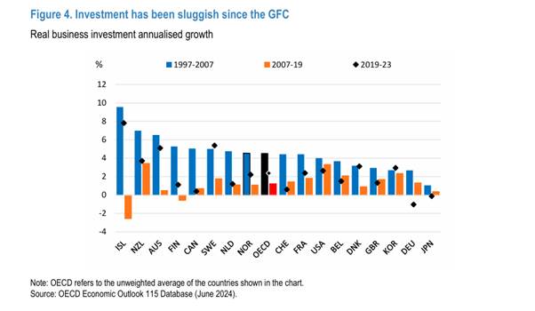 And so-called ‘intangibles’, like software investment, did not compensate for the decline in investment in plant, equipment etc. “Notwithstanding the rise of intangibles, total investment since the GFC has been weak overall, which worsened the labour productivity slowdown directly.”