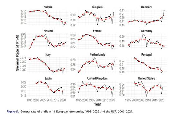Perhaps the most interesting paper presented at WAPE that I have received is that by Greek Marxist economists Ozan Mutlu & Lefteris Tsoulfidis, on Capital Accumulation, Technological Change, and the Rate of Profit in European and the US Economies. This paper makes a significant contribution to Marx’s law of profitability and the ensuing consequences for the major economies in 2025.