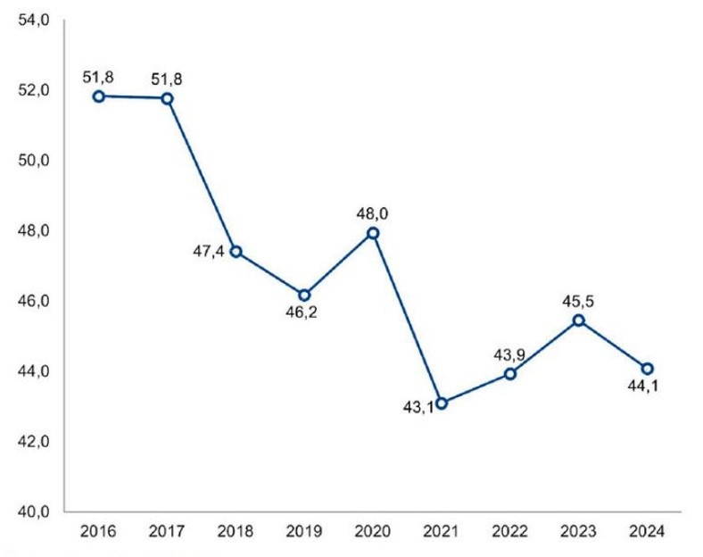 And there are also periods when wages lag behind inflation and purchasing power falls, such as in the last three years of Cristina Fernández’s government, from 2013-2015. Now the workers’ share of GDP is 44%.