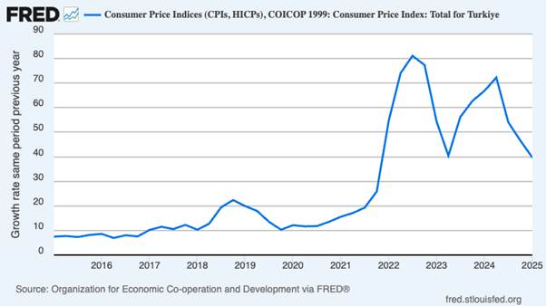 But was Turkey’s 40-50% a year inflation due to low interest rates or due to its chronically huge current account deficits that drove down the Turkish lira against the euro and the dollar -and also Erdogan’s political moves to suppress opposition forces in the country, Trump style? Turkey’s current account and trade deficit relative to GDP more than doubled during the Erdogan years.