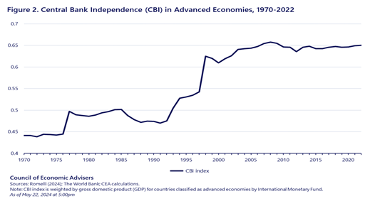 Central bank independence (CBI) mushroomed in the neo-liberal period after the stagflationary 1970s. CBI was a part of neo-liberal economic policy, which aimed to get government out of ‘managing the economy’ Keynesian style and instead allow free markets and deregulation of finance, in particular. Since the 1990s, in particular, CBI has become “accepted wisdom of modern economics” (Cochrane).