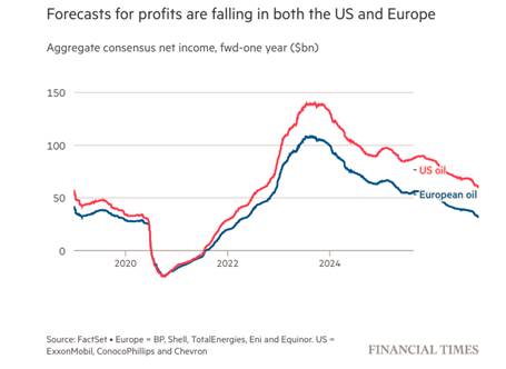 In addition, crude oil prices have been falling and this is reducing profits for the US energy sector. Capital spending on global oil and gas production is forecast to drop 4.3%, the first annual fall in investment since 2020. The energy companies are cutting jobs, slashing costs and scaling back investments at the fastest pace since the pandemic slump. The US shale industry has been hit particularly hard.