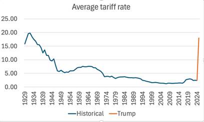 Trump and the MAGA team claim that tariffs will bring in so much tax revenue ($1.8trn) and new business investment ($3-5trn extra) that the economy will boom (4% next year, they claim) and that will lead to hundreds of thousands of new jobs. But there is no evidence to support these claims.