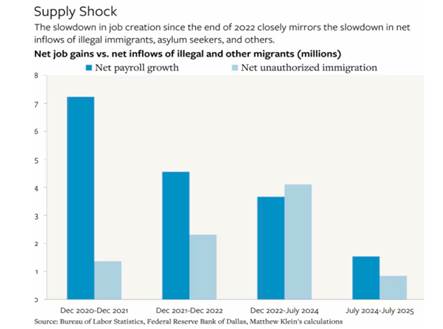 Trump sacked the head of Bureau of Labor Statistics after the BLS recorded a very weak jobs growth figure. But since then, annual revisions of the jobs figures have reduced employment growth by 911k in the year to March 2025. Sacking the messenger does not change the message. US jobs growth has slowed to a rate outside of recessionary periods not seen for more than 60 years. Employment growth is slowing, not because of weak demand but because supply growth is drying up as immigration falls, manufacturing stays in recession and the government agencies and workforce are decimated by Trump.