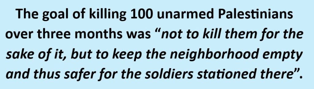 By attaching a military goal to each act of killing, Israelis of all stripes could partake in the slaughter without questioning the morality of their actions.