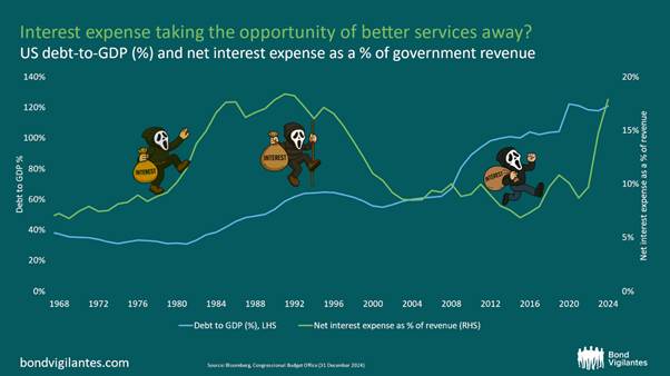But the only joker in the economic pack of cards, according to investors and corporate strategists, is the public sector. The US government is still running huge annual budget deficits and thus driving up the level of government debt, and so increasing the cost of servicing that debt.