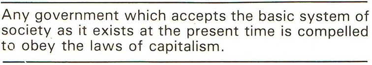 Any government which accepts the basic system of society as it exists at the present time is compelled to obey the laws of capitalism. In addition, as in France and other countries they faced the sabotage and implacable hostility of big business, which uses their control of the economic resources of society for the purpose of forcing Labour governments to carry out Tory policies rather than carry out even the reformist policies which they are putting forward at the present time.