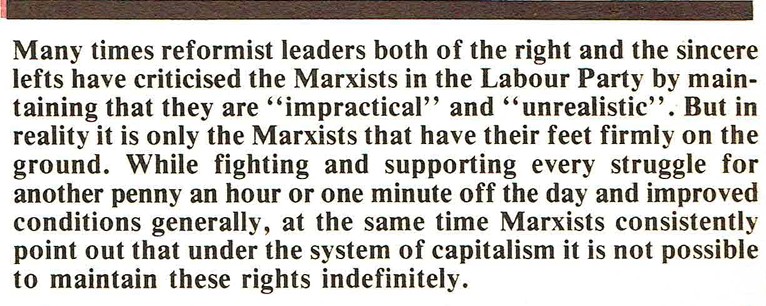 What this proves is that it is impossible partially and gradually to reform capitalism and prepare the way for socialism. Most of the left Labour leaders have had the untenable position that it would be possible over a period of 50 years of Labour governments to transform capitalism into socialism and achieve the nationalisation of the commanding heights of the economy. It was always utopian to believe so, but under conditions of capitalist crisis it is absolutely impossible.