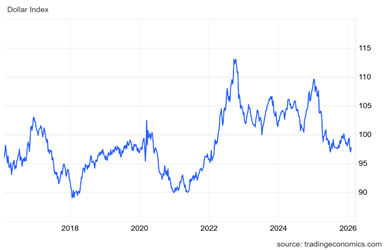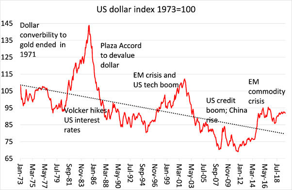 Yes, the dollar might well fall further this year because of the stagflationary US economy; the bursting of the AI bubble and the likely further reduction in US interest rates relative to other national rates; along with Trump’s tantrums. But while the US dollar may have weakened in the last year, the dollar is still very strong historically. Federal Reserve data show that the real value of the dollar still stands nearly two standard deviations above its average since the start of the floating exchange rate era in 1973.