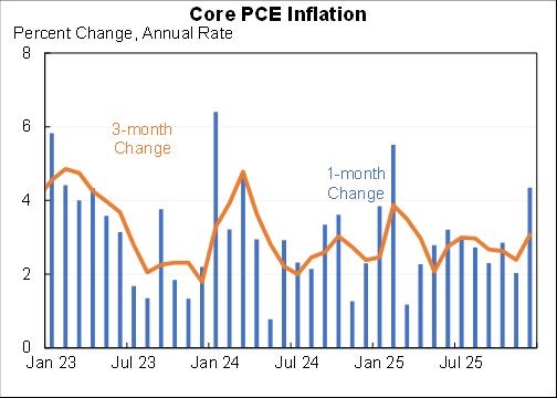 Headline consumer price inflation on a three-month basis is still 3%. The latest GDP data for Q4 measures what is called the personal consumption expenditure (PCE) index for inflation. This is the measure that the Federal Reserve follows to adjust its policy interest rate. And the core PCE (excluding food and energy) is also above 3% on a 3-month basis (Furman source).