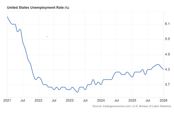 So far, the unemployment rate has not risen too much. But 2026 is likely to change that. Job cut announcements have hit their highest levels since 2009, while vacancies have fallen to 2020 lows. Last month, US employers announced over 108,000 job cuts, the highest start-of-year total since the 2009 Great Recession, with layoffs rising 118% year over year and over 200% from the end of 2025. Many of those cuts were in white-collar professions.
