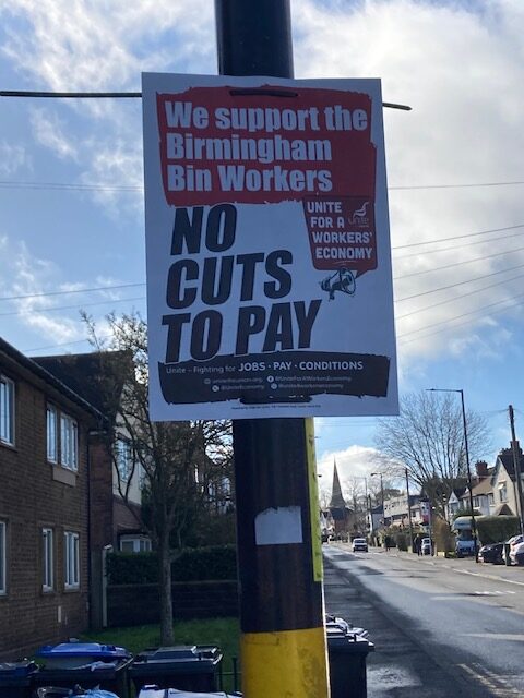 The union has also been putting up posters across the city. It is significant that the vast majority of them are still there – although a refuse strike is a huge inconvenience for everybody, the general attitude in Birmingham is ‘well, I don’t like it but if someone tried to cut my wage by £8,000 I’d bloody well go on strike too’.